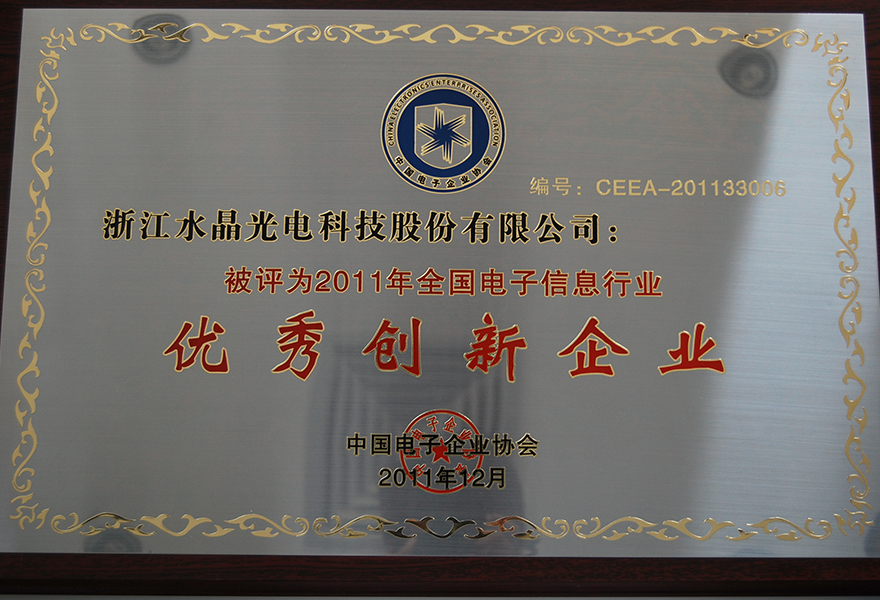 11.A-87 浙江水晶光電科技股份有限公司被評為2011年全國電子信息行業(yè)優(yōu)秀創(chuàng)新企業(yè)201112