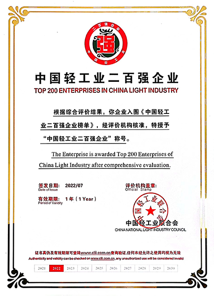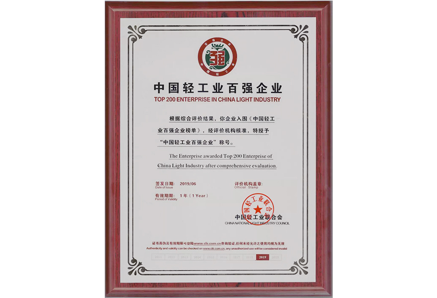 2020年度“中國輕工業(yè)二百強企業(yè)“