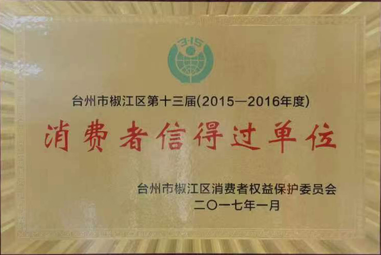 2015-2016年度臺(tái)州市椒江區(qū)第十三屆消費(fèi)者信得過單位