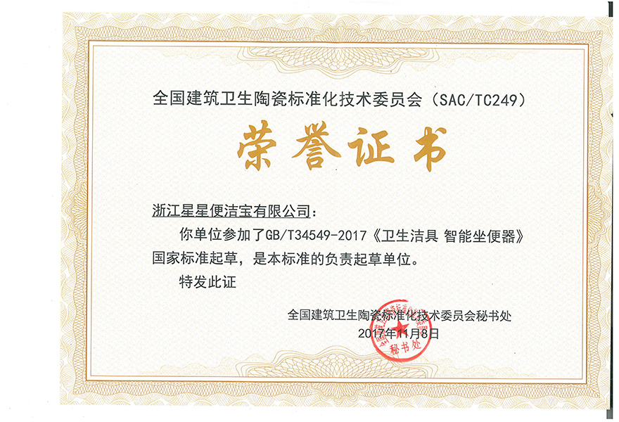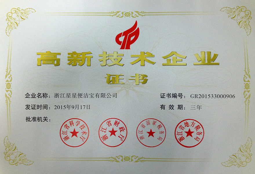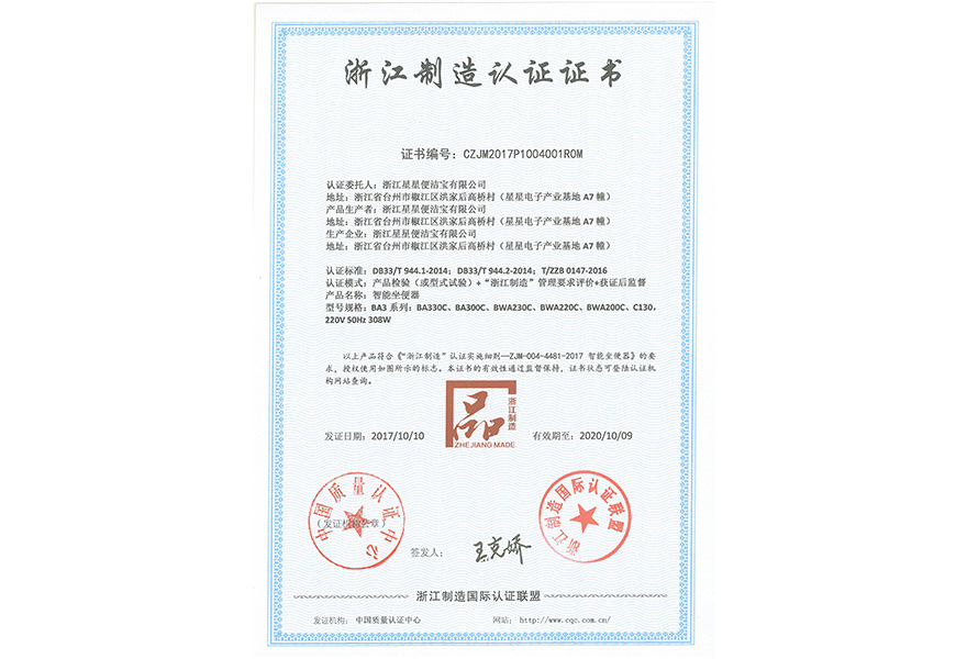 浙江星星便潔寶有限公司成立于1998年,是國(guó)內(nèi)最早自主研發(fā)、生產(chǎn)智能馬桶的企業(yè)之一。歷經(jīng)近30年的發(fā)展,現(xiàn)已成為國(guó)內(nèi)技術(shù)水平領(lǐng)先、產(chǎn)能規(guī)模居前,融合設(shè)計(jì)、研發(fā)、生產(chǎn)、銷售為一體的智能馬桶企業(yè)。公司參與起草了智能馬桶的國(guó)家、行業(yè)、地方三大標(biāo)準(zhǔn),是智能馬桶“浙江制造”首張認(rèn)證單位,同時(shí)也是首批通過CCC認(rèn)證的單位。