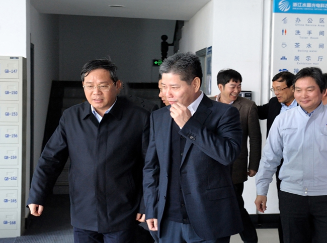 2013年2月16日,浙江省委副書記、省長李強(qiáng)(左一)蒞臨我集團(tuán)水晶光電...