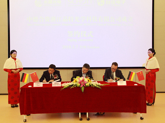 3月7日下午,中德合資浙江晶特光學(xué)科技有限公司成立儀式在水晶光電綜合樓博學(xué)廳舉行。椒江區(qū)政府副區(qū)長盧建波、區(qū)府辦、區(qū)發(fā)改局、區(qū)經(jīng)信局、集聚區(qū)椒江分區(qū)管委會、區(qū)商務(wù)...
