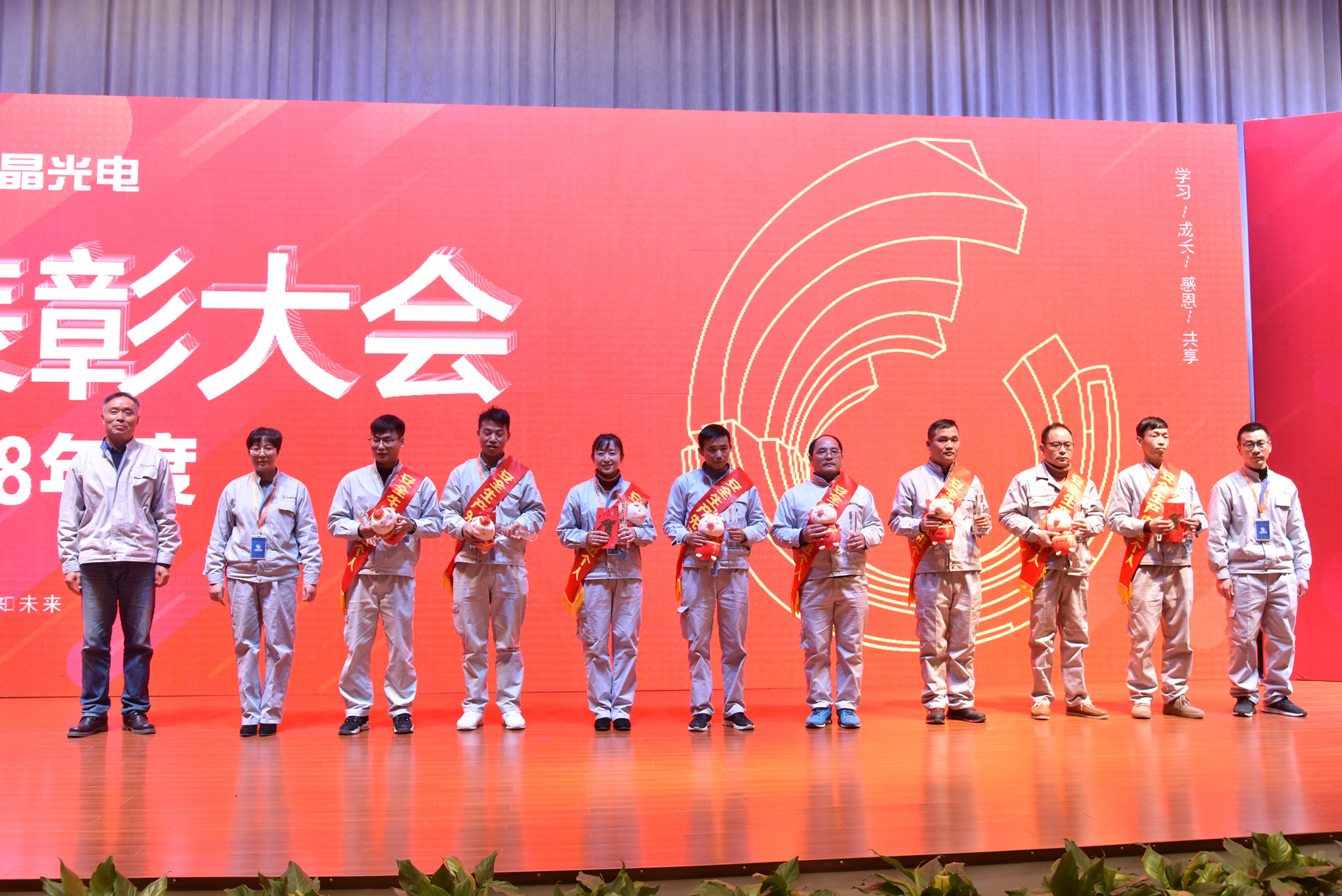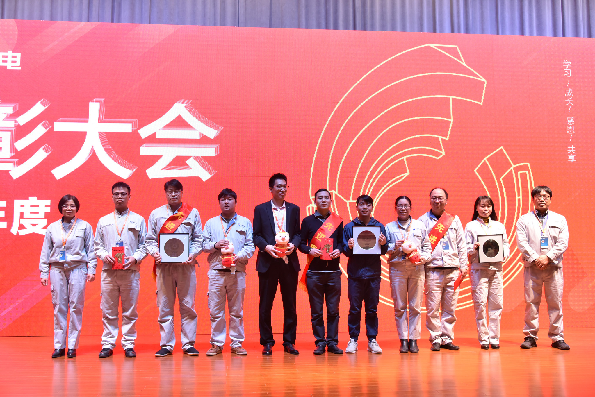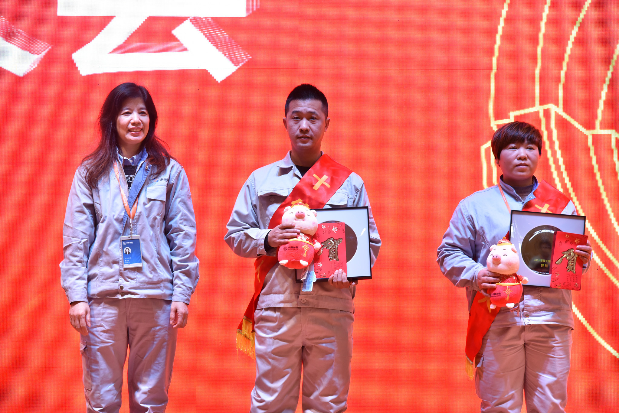 接著,公司對(duì)從優(yōu)秀員工提名名單中,評(píng)選出的10名在2018年度有突出業(yè)績(jī)的十佳員工進(jìn)行了表彰,并為他們頒發(fā)了獎(jiǎng)牌、獎(jiǎng)金和吉祥物。