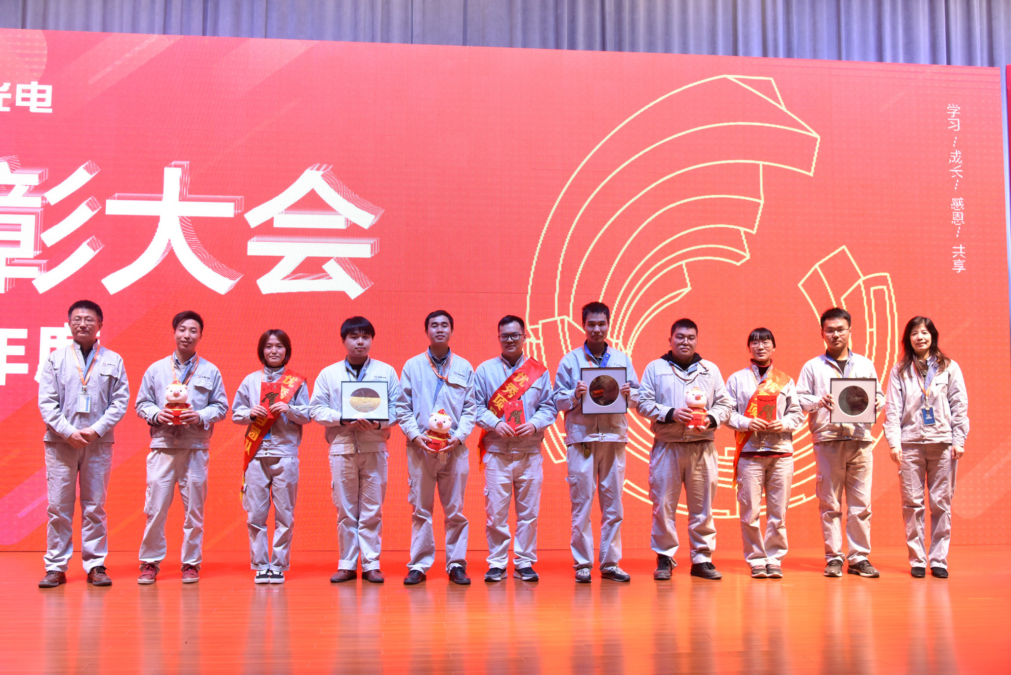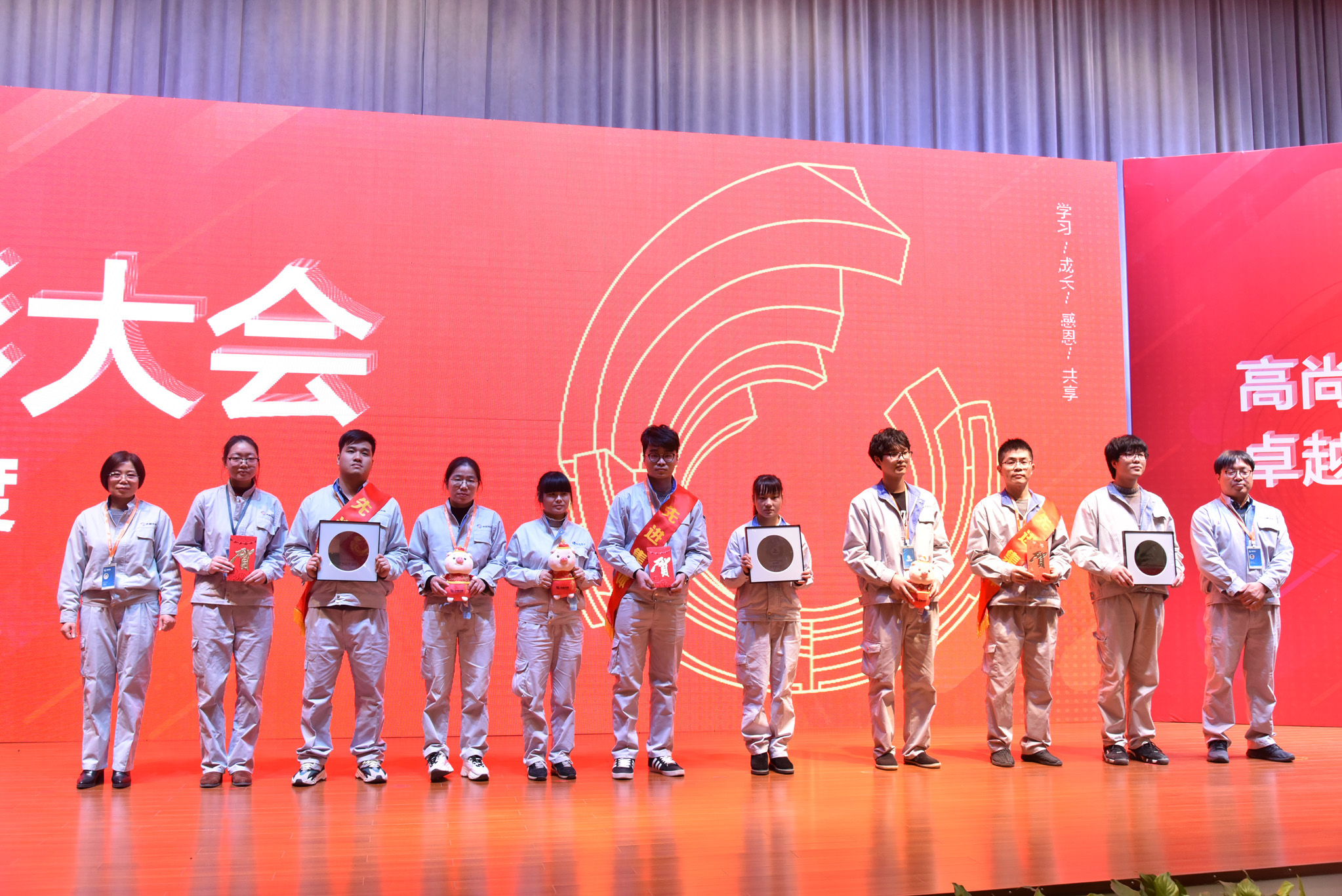 這一年,公司也涌現(xiàn)出了許多優(yōu)秀的員工和團(tuán)隊(duì),他們愛崗敬業(yè)、技能精湛、勤精誠(chéng)樸、攻堅(jiān)克難,在平凡的崗位上做出了不平凡的成績(jī)。會(huì)上,公司對(duì)獲得明日之星、優(yōu)秀輔導(dǎo)員、操作能手、班組骨干、技術(shù)尖兵、服務(wù)楷模、銷售明星、管理精英9個(gè)單項(xiàng)獎(jiǎng)的48名優(yōu)秀員工進(jìn)行表彰,并為他們頒發(fā)了獎(jiǎng)牌、獎(jiǎng)金和吉祥物。