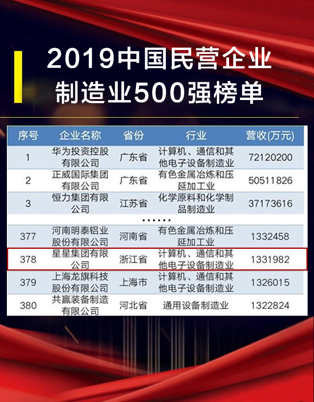 8月22日,全國工商聯(lián)在青海省西寧市發(fā)布2019中國民營企業(yè)制造業(yè)500強(qiáng)榜單,星星集團(tuán)榜上有名。