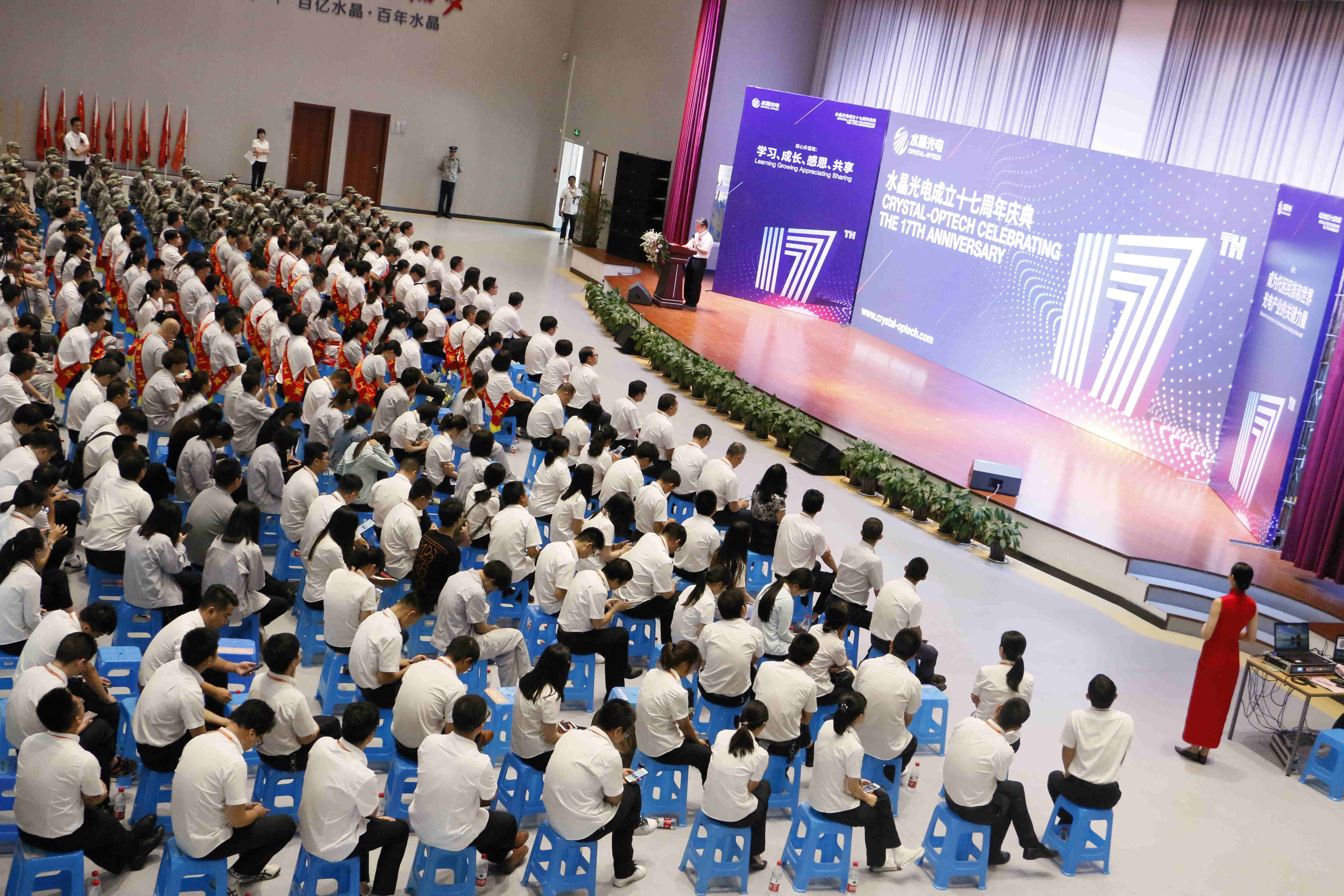 最后,林敏董事長(zhǎng)發(fā)表致辭致敬水晶未來(lái):我要代表公司管理層對(duì)各位已經(jīng)在公司服務(wù)三年、五年、十年乃至十五年的水晶老員工表示衷心的感謝,謝謝你們的辛勤付出,同時(shí)我也真誠(chéng)的希望在建設(shè)水晶未來(lái)的道路上,能夠和大家攜手共進(jìn),為更美好的明天再接再厲,再次創(chuàng)造水晶光電下一個(gè)輝煌!未來(lái),水晶光電要從制造型企業(yè)向技術(shù)型企業(yè)轉(zhuǎn)型,要從提供產(chǎn)品向提供解決方案轉(zhuǎn)型,要沖破非連續(xù)性從第一曲線到第二曲線,要建立以客戶為中心的端到端流程的跨職能管理模式。水晶光電十七歲,生日快樂。