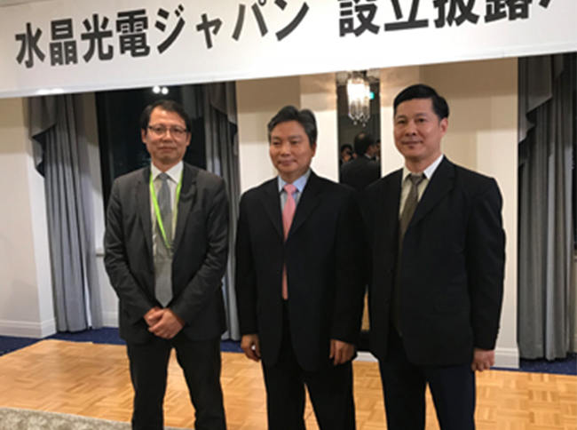 10月12日,水晶光電日本公司成立,在第一酒店?yáng)|京舉行了盛大的披露晚宴。晚宴出席公司近40家,亞洲市場(chǎng)經(jīng)理鄒雨華、便潔寶總經(jīng)理黃朝陽(yáng)代表星星集團(tuán)及兄弟公司出席晚宴。合作伙伴日本光馳孫大雄會(huì)長(zhǎng)、客戶包含相機(jī)領(lǐng)域重要客戶AGC、佳能、尼康、索尼、奧林巴斯等,還有主要原輔材料供應(yīng)廠家JSR、HOYA日東、DISCO等一同參加。