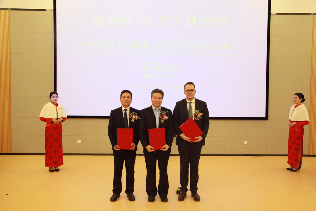 肖特公司擁有130多年的歷史,堅(jiān)持持續(xù)創(chuàng)新和優(yōu)秀產(chǎn)品,不斷推動(dòng)著光學(xué)、電子、電器等產(chǎn)業(yè)的發(fā)展,是一家國(guó)際知名企業(yè)。水晶光電是臺(tái)州市的重點(diǎn)骨干企業(yè),自創(chuàng)立以來(lái)堅(jiān)持科技創(chuàng)新,已成長(zhǎng)為全球光學(xué)領(lǐng)域的領(lǐng)軍企業(yè)。今天,水晶光電及其子公司臺(tái)佳電子和肖特公司在這里合資成立晶特光學(xué)科技有限公司,共同著力發(fā)展AR顯示、消費(fèi)類(lèi)電子相關(guān)半導(dǎo)體封裝光學(xué)元器件業(yè)務(wù),填補(bǔ)國(guó)內(nèi)空白,這將進(jìn)一步提升水晶光電在光學(xué)新產(chǎn)業(yè)的核心競(jìng)爭(zhēng)力,也將加快椒江區(qū)工業(yè)經(jīng)濟(jì)優(yōu)化升級(jí)。